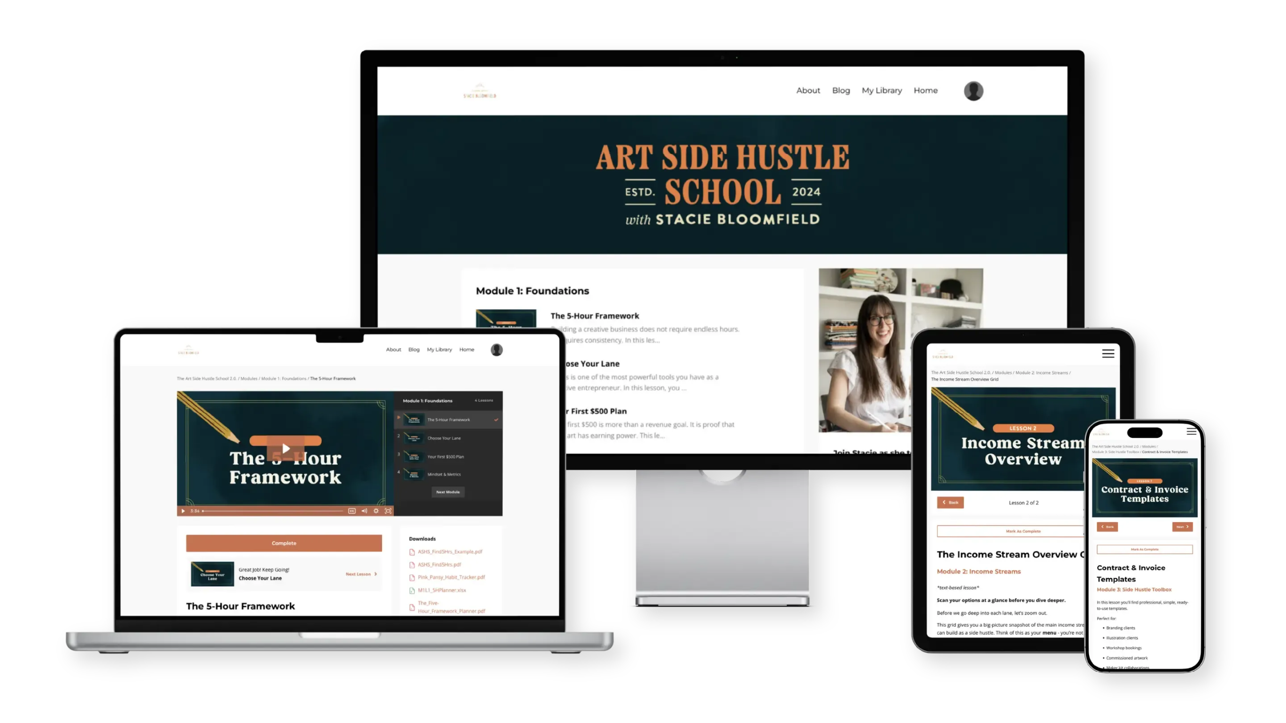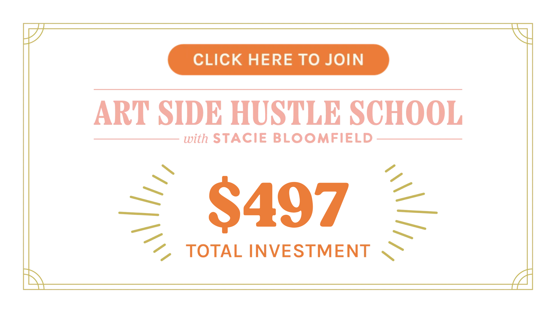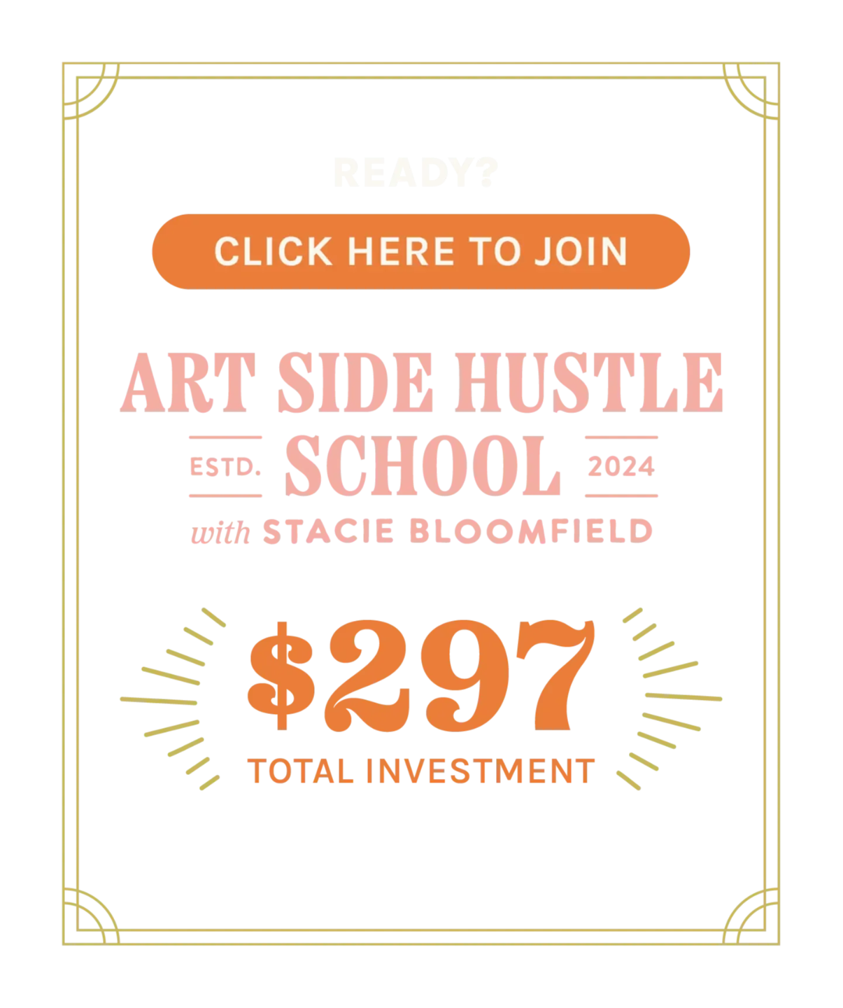 That’s why I created Art Side Hustle School: to give you a clear, doable roadmap to monetize your art and create an income stream without burning out or breaking the bank.