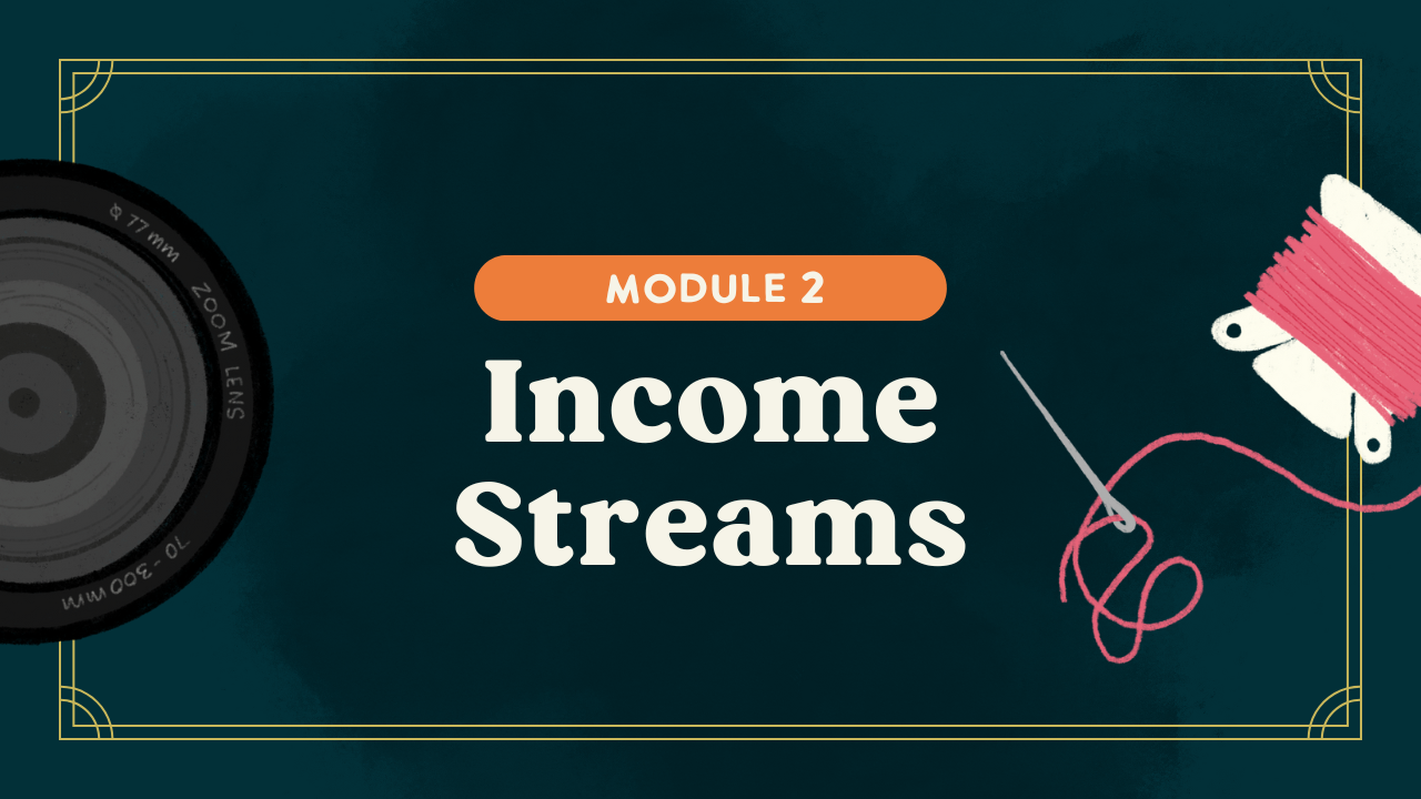 In Module 2, you’ll explore the Lane Library—a quick tour of art income options (Print Club, POD, digital downloads, originals, maker kits, KDP, workshops, and licensing) so you can compare lanes and choose the ones that fit you best.